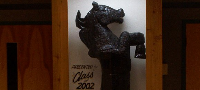 After nearly two and half years of restoration efforts, the original Mustang Tree was restored and ready to return home. The original Mustang carving was repaired by Wesley Zepp, owner of American Tree and Stump Removal, along with employees Shawn Yohe, Zach Funt, and Jamie Starling. The restored Mustang was presented on October 8, 2004 by class of 2002 President Matthew Baile, South Western Alumni Association President Pat Loss, and retired South Western teacher, coach, and Principal John Quashnoc. The restored Mustang was presented as the class gift of the class of 2002 to South Western Superintendent Dr. Barbara Rupp, School Board President Mr. Dale Myers, and then High School Principal Mr. Walter Graves. The restored carving now stands inside a welded steel frame encased by two layers of wood with a plexi-glasss display in the High School lobby.